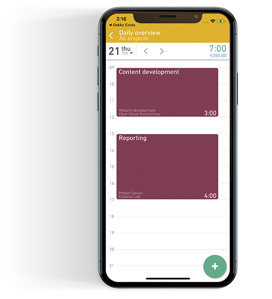 Everything you need as a small entrepreneur. Sending invoices, tracking hours worked, scanning receipts, tracking your trips, VAT reporting, and much, much more. Find out below all the details about the Gekko apps for your online accounting needs. You can download them for free and use them all with one single Gekko account. Everything connected and safely stored in one online account.